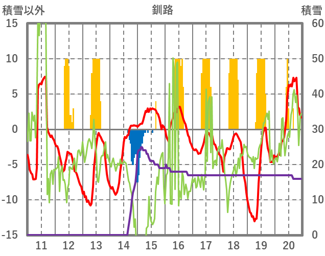 | 日 | 時 | 気温 | 降水 | 風向/風速 | 日照 | 積雪 | 降雪 |