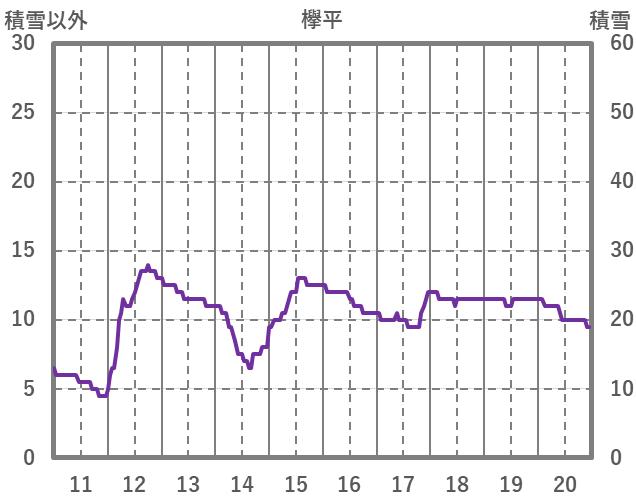 | 日 | 時 | 気温 | 降水 | 風向/風速 | 日照 | 積雪 | 降雪 |