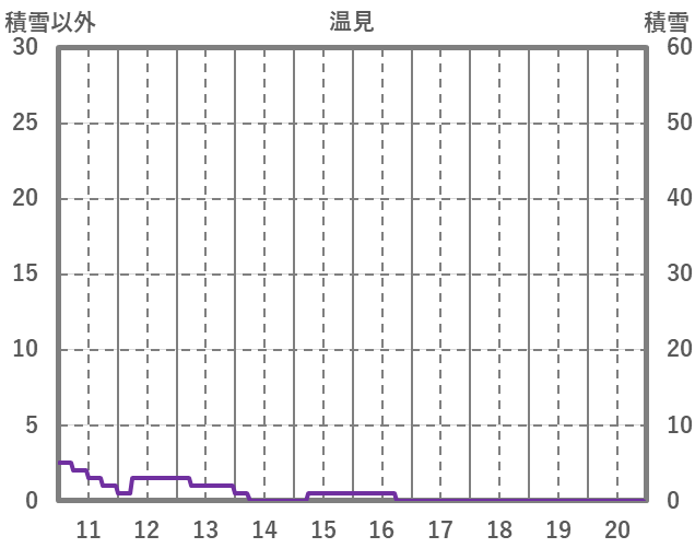 | 日 | 時 | 気温 | 降水 | 風向/風速 | 日照 | 積雪 | 降雪 |