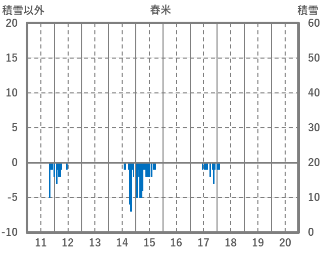 | 日 | 時 | 気温 | 降水 | 風向/風速 | 日照 | 積雪 | 降雪 |