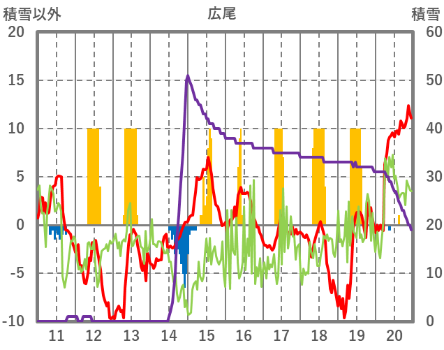 | 日 | 時 | 気温 | 降水 | 風向/風速 | 日照 | 積雪 | 降雪 |