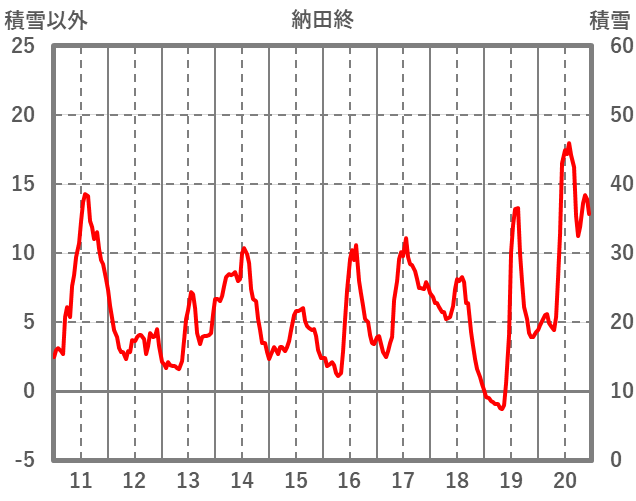 | 日 | 時 | 気温 | 降水 | 風向/風速 | 日照 | 積雪 | 降雪 |