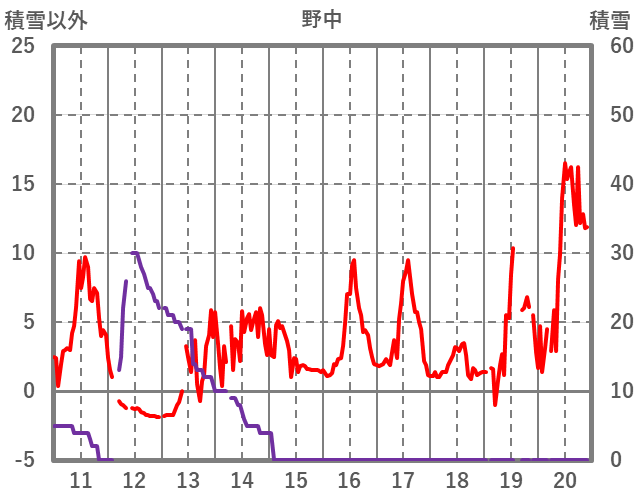 | 日 | 時 | 気温 | 降水 | 風向/風速 | 日照 | 積雪 | 降雪 |