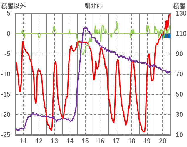 | 日 | 時 | 気温 | 降水 | 風向/風速 | 日照 | 積雪 | 降雪 |