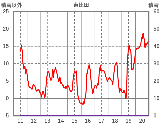| 日 | 時 | 気温 | 降水 | 風向/風速 | 日照 | 積雪 | 降雪 |
