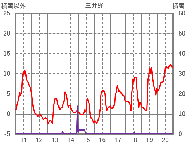 | 日 | 時 | 気温 | 降水 | 風向/風速 | 日照 | 積雪 | 降雪 |