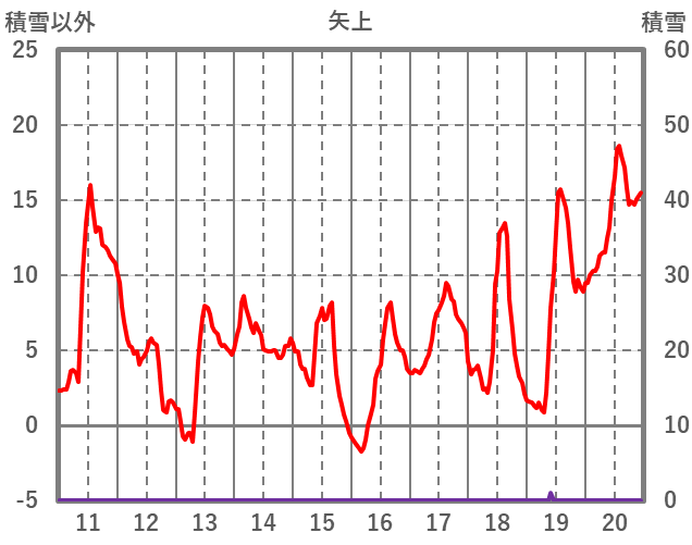 | 日 | 時 | 気温 | 降水 | 風向/風速 | 日照 | 積雪 | 降雪 |