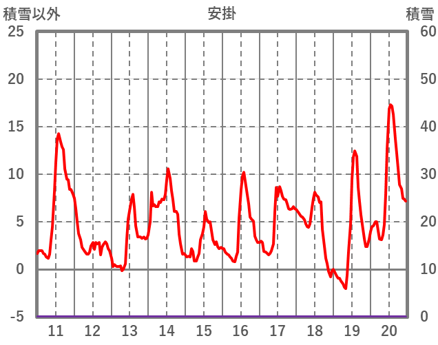 | 日 | 時 | 気温 | 降水 | 風向/風速 | 日照 | 積雪 | 降雪 |