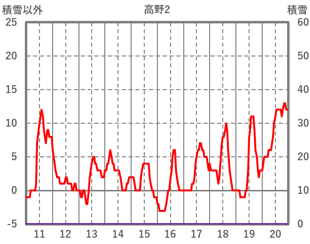 | 日 | 時 | 気温 | 降水 | 風向/風速 | 日照 | 積雪 | 降雪 |