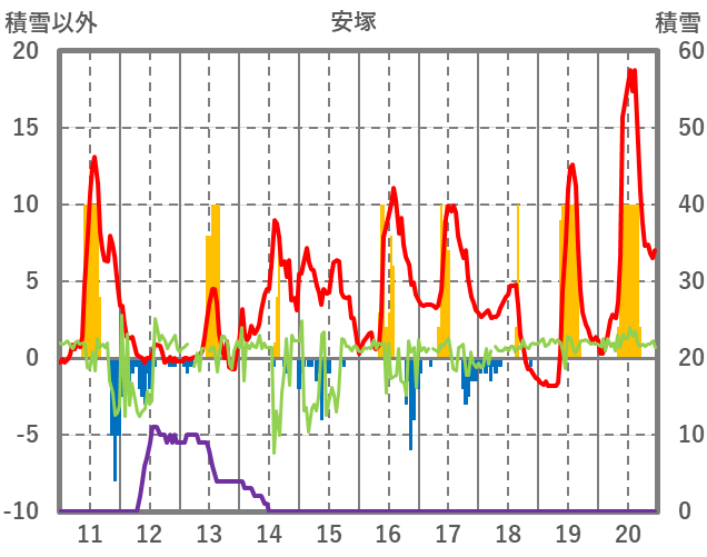 | 日 | 時 | 気温 | 降水 | 風向/風速 | 日照 | 積雪 | 降雪 |