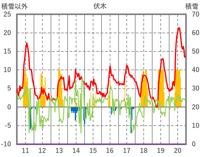 | 日 | 時 | 気温 | 降水 | 風向/風速 | 日照 | 積雪 | 降雪 |