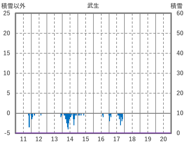 | 日 | 時 | 気温 | 降水 | 風向/風速 | 日照 | 積雪 | 降雪 |
