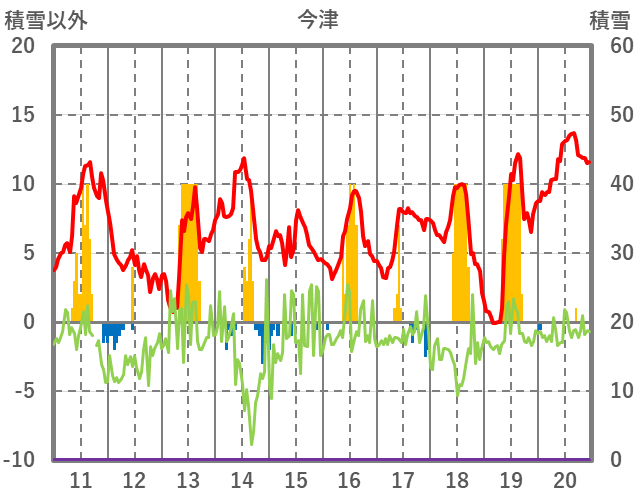 | 日 | 時 | 気温 | 降水 | 風向/風速 | 日照 | 積雪 | 降雪 |
