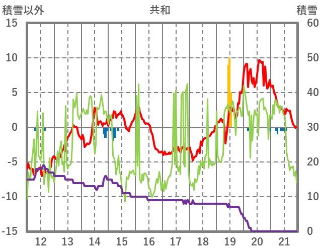 | 日 | 時 | 気温 | 降水 | 風向/風速 | 日照 | 積雪 | 降雪 |