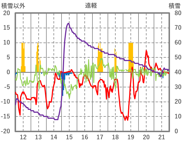 | 日 | 時 | 気温 | 降水 | 風向/風速 | 日照 | 積雪 | 降雪 |