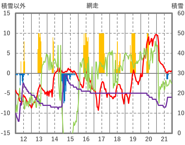 | 日 | 時 | 気温 | 降水 | 風向/風速 | 日照 | 積雪 | 降雪 |