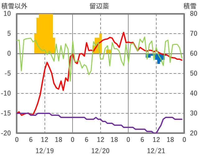 | 日 | 時 | 気温 | 降水 | 風向/風速 | 日照 | 積雪 | 降雪 |