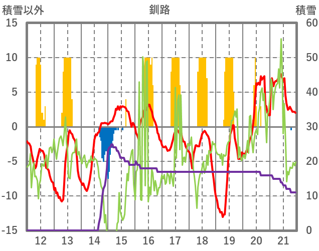 | 日 | 時 | 気温 | 降水 | 風向/風速 | 日照 | 積雪 | 降雪 |