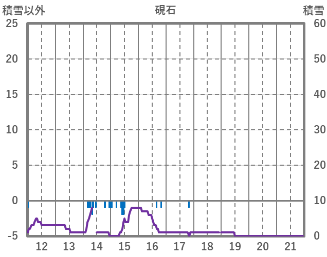 | 日 | 時 | 気温 | 降水 | 風向/風速 | 日照 | 積雪 | 降雪 |