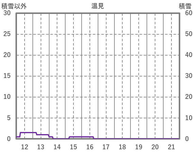 | 日 | 時 | 気温 | 降水 | 風向/風速 | 日照 | 積雪 | 降雪 |