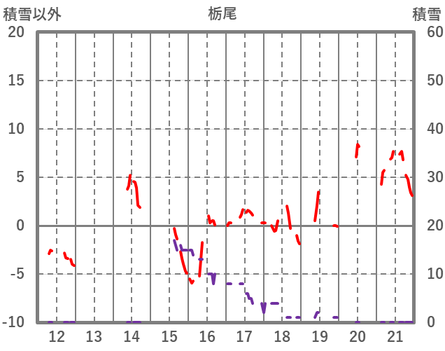 | 日 | 時 | 気温 | 降水 | 風向/風速 | 日照 | 積雪 | 降雪 |
