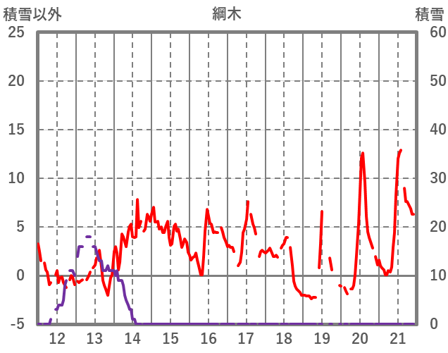 | 日 | 時 | 気温 | 降水 | 風向/風速 | 日照 | 積雪 | 降雪 |