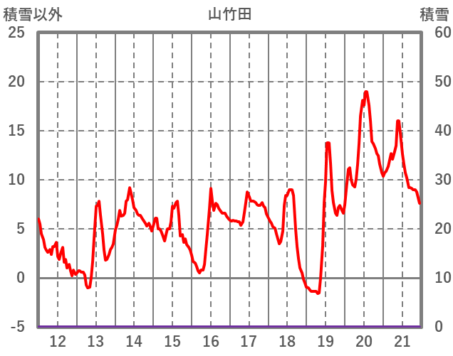 | 日 | 時 | 気温 | 降水 | 風向/風速 | 日照 | 積雪 | 降雪 |