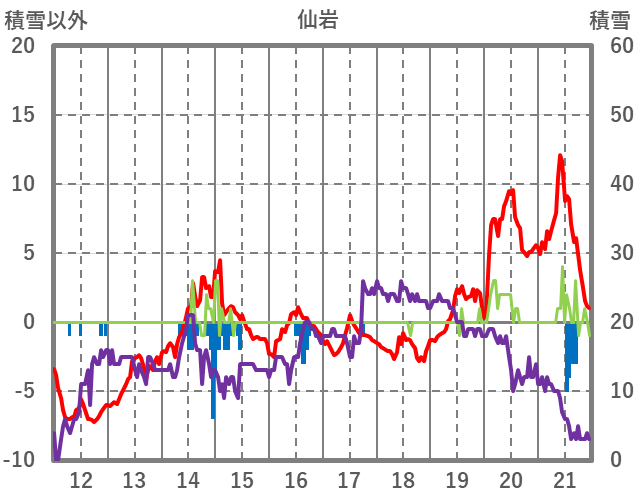 | 日 | 時 | 気温 | 降水 | 風向/風速 | 日照 | 積雪 | 降雪 |