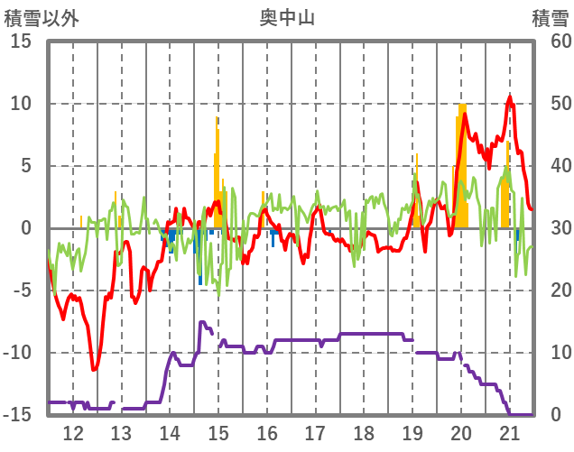 | 日 | 時 | 気温 | 降水 | 風向/風速 | 日照 | 積雪 | 降雪 |