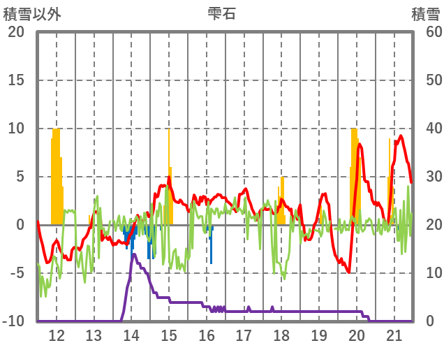 | 日 | 時 | 気温 | 降水 | 風向/風速 | 日照 | 積雪 | 降雪 |