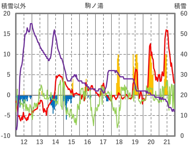| 日 | 時 | 気温 | 降水 | 風向/風速 | 日照 | 積雪 | 降雪 |