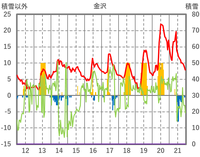 | 日 | 時 | 気温 | 降水 | 風向/風速 | 日照 | 積雪 | 降雪 |