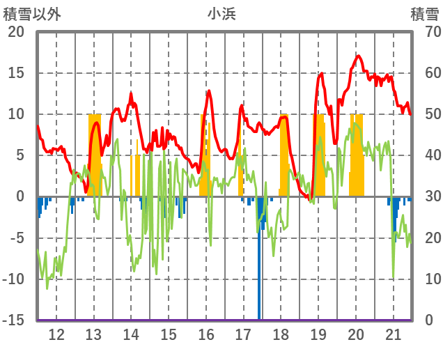 | 日 | 時 | 気温 | 降水 | 風向/風速 | 日照 | 積雪 | 降雪 |