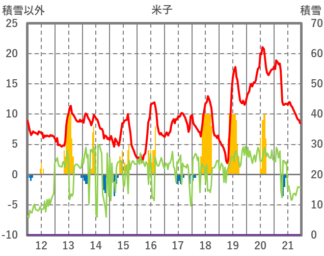 | 日 | 時 | 気温 | 降水 | 風向/風速 | 日照 | 積雪 | 降雪 |