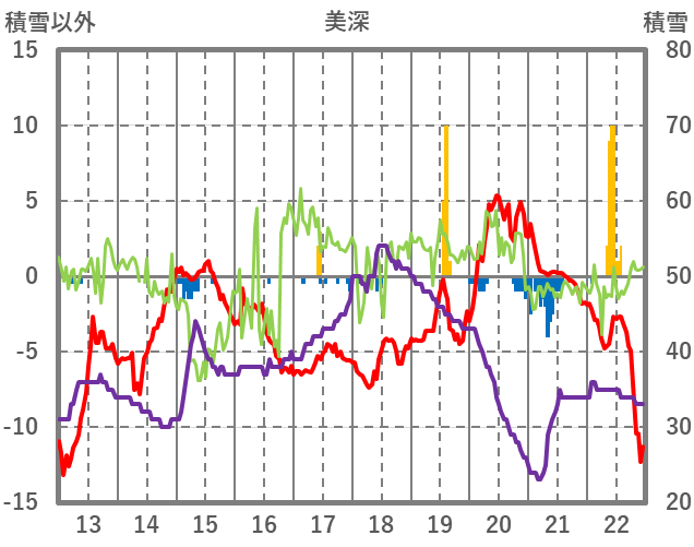 | 日 | 時 | 気温 | 降水 | 風向/風速 | 日照 | 積雪 | 降雪 |