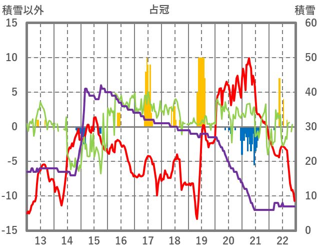 | 日 | 時 | 気温 | 降水 | 風向/風速 | 日照 | 積雪 | 降雪 |