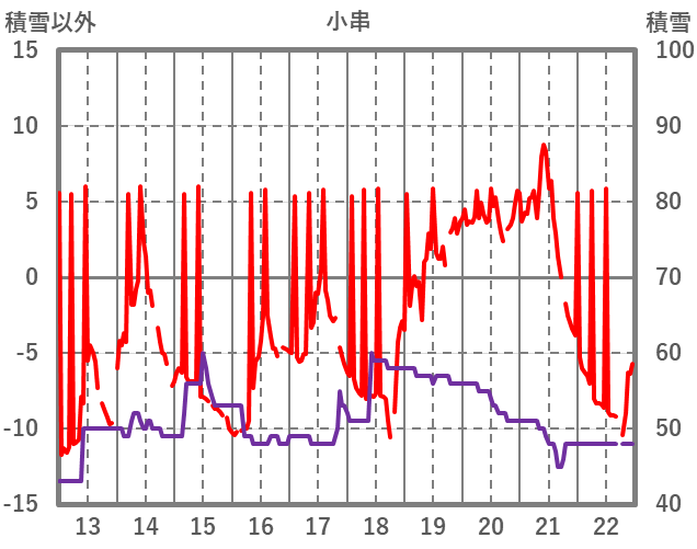 | 日 | 時 | 気温 | 降水 | 風向/風速 | 日照 | 積雪 | 降雪 |