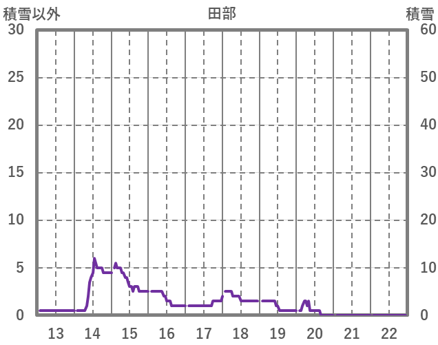 | 日 | 時 | 気温 | 降水 | 風向/風速 | 日照 | 積雪 | 降雪 |