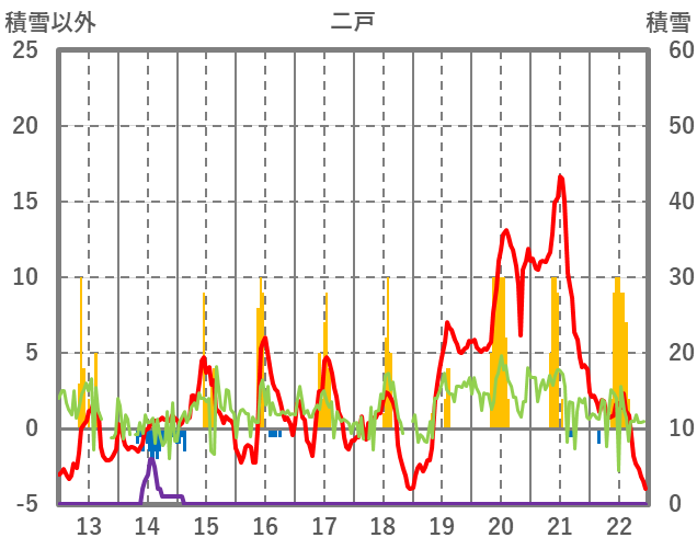 | 日 | 時 | 気温 | 降水 | 風向/風速 | 日照 | 積雪 | 降雪 |
