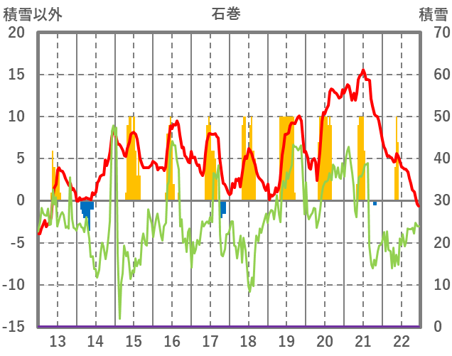 | 日 | 時 | 気温 | 降水 | 風向/風速 | 日照 | 積雪 | 降雪 |