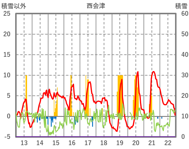 | 日 | 時 | 気温 | 降水 | 風向/風速 | 日照 | 積雪 | 降雪 |