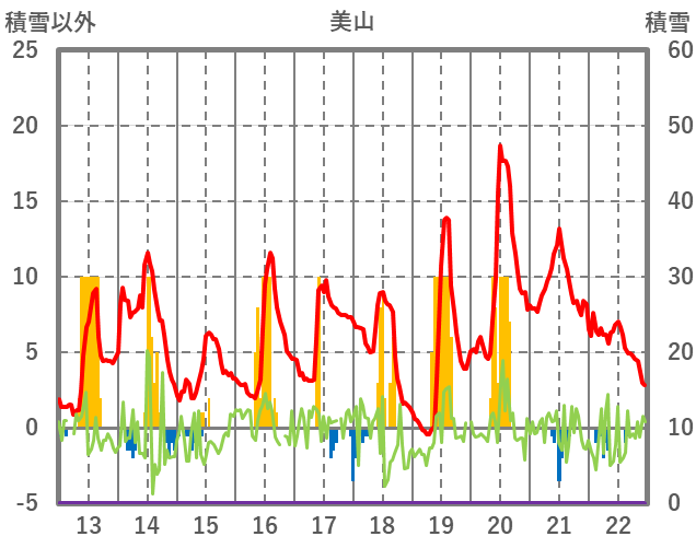 | 日 | 時 | 気温 | 降水 | 風向/風速 | 日照 | 積雪 | 降雪 |