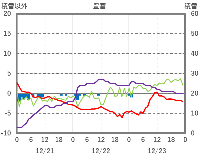 | 日 | 時 | 気温 | 降水 | 風向/風速 | 日照 | 積雪 | 降雪 |