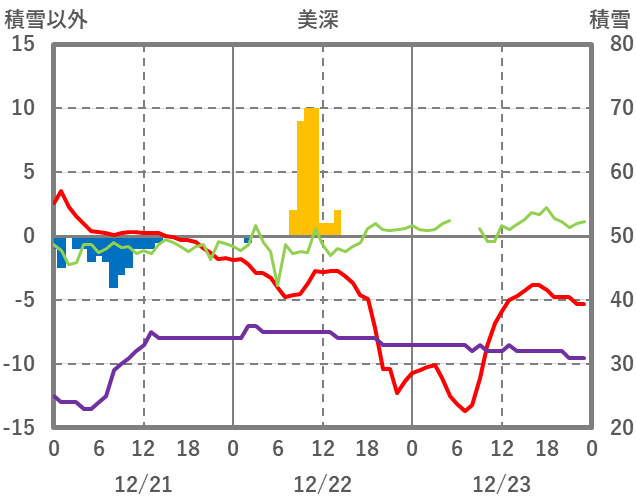 | 日 | 時 | 気温 | 降水 | 風向/風速 | 日照 | 積雪 | 降雪 |