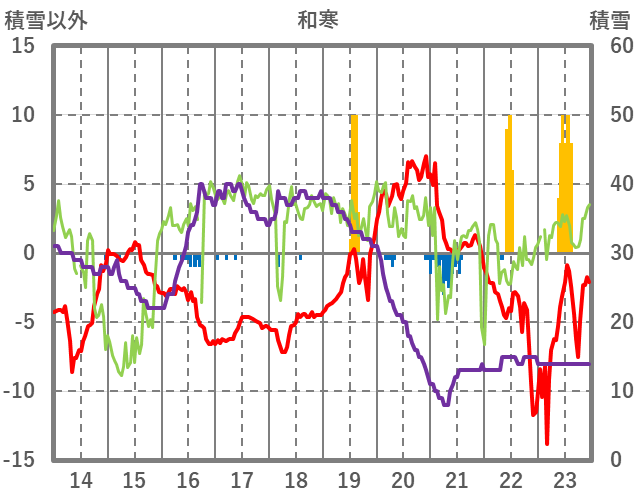 | 日 | 時 | 気温 | 降水 | 風向/風速 | 日照 | 積雪 | 降雪 |