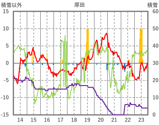 | 日 | 時 | 気温 | 降水 | 風向/風速 | 日照 | 積雪 | 降雪 |