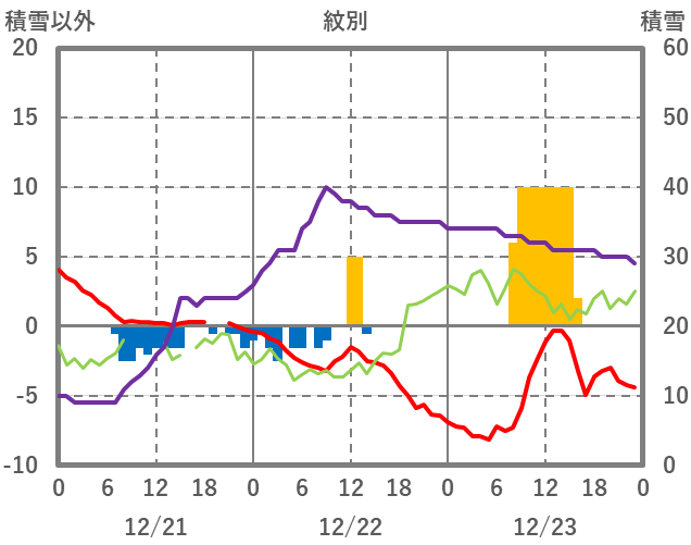 | 日 | 時 | 気温 | 降水 | 風向/風速 | 日照 | 積雪 | 降雪 |