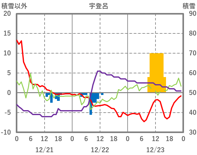 | 日 | 時 | 気温 | 降水 | 風向/風速 | 日照 | 積雪 | 降雪 |