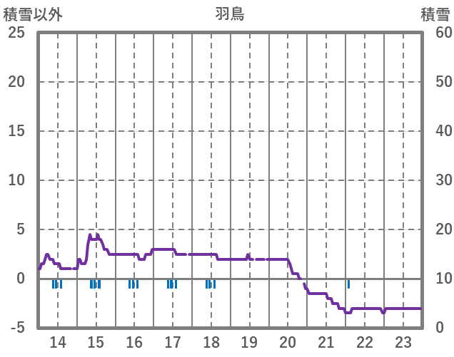 | 日 | 時 | 気温 | 降水 | 風向/風速 | 日照 | 積雪 | 降雪 |