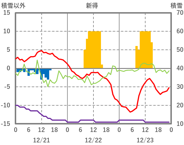 | 日 | 時 | 気温 | 降水 | 風向/風速 | 日照 | 積雪 | 降雪 |